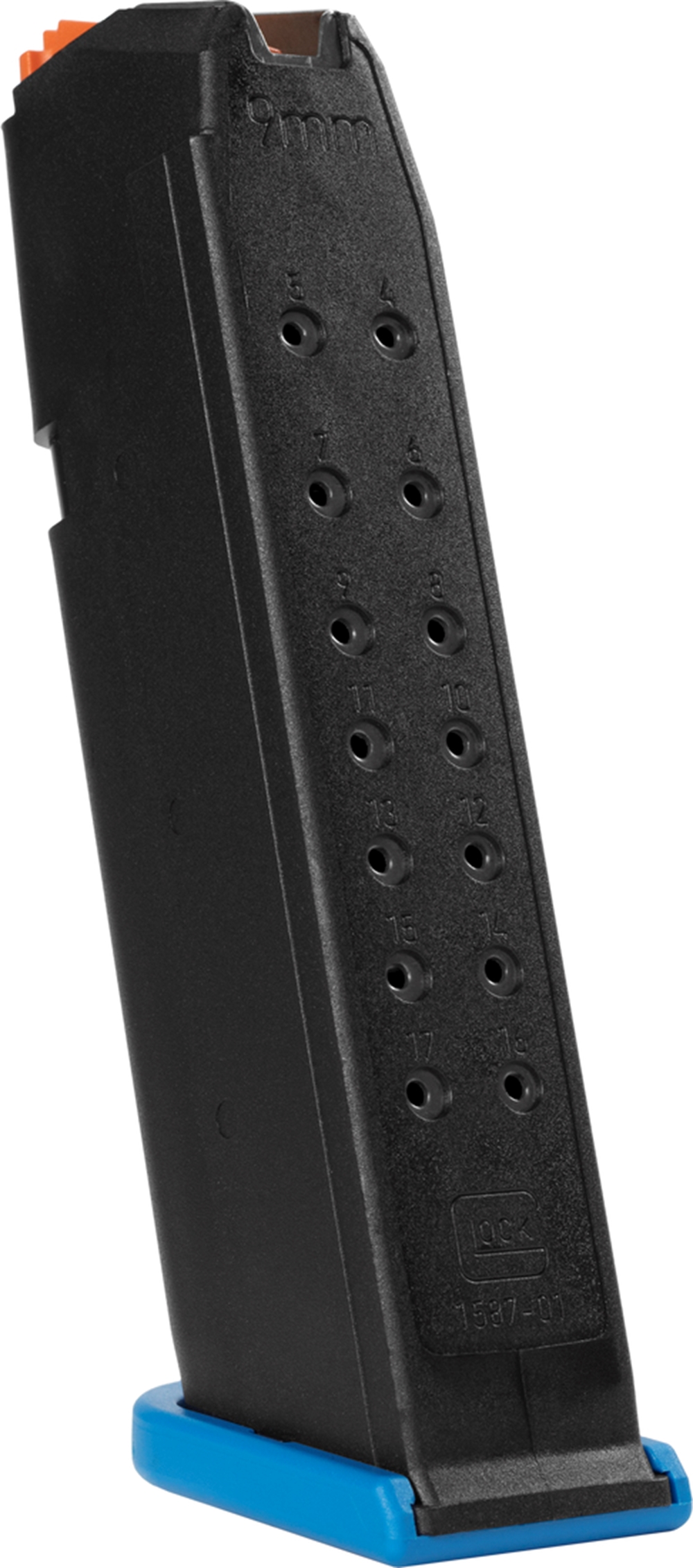 Magazin Glock 17/45 Gen5, Bod. blau, Zubr. orange 9x19